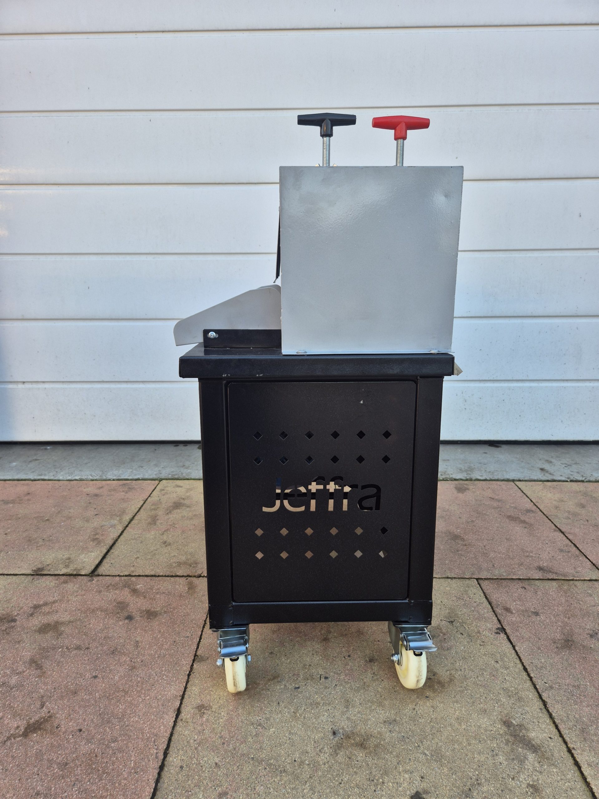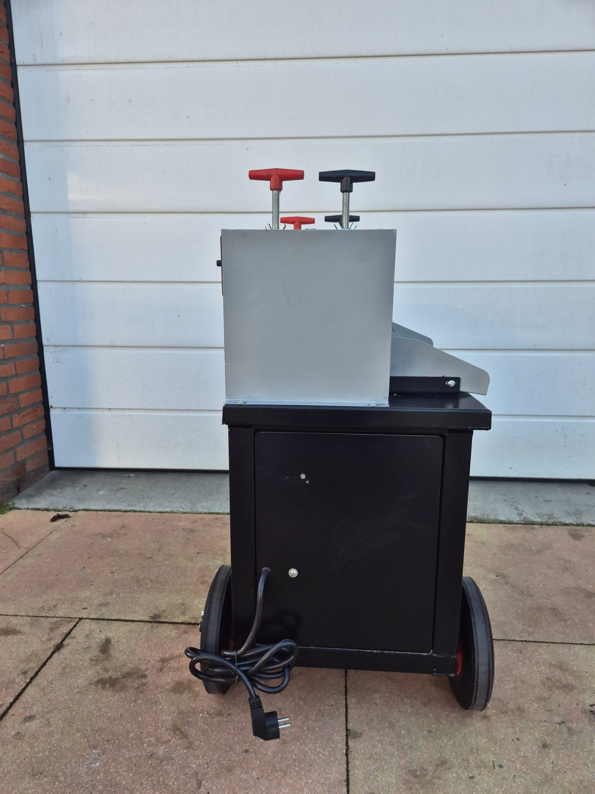 De machine is vervaardigd uit gecoat staal, wat zorgt voor een lange levensduur, zelfs bij intensief dagelijks gebruik. De compacte constructie en de geïntegreerde transportwielen maken het eenvoudig om de machine te verplaatsen binnen de werkplaats.
