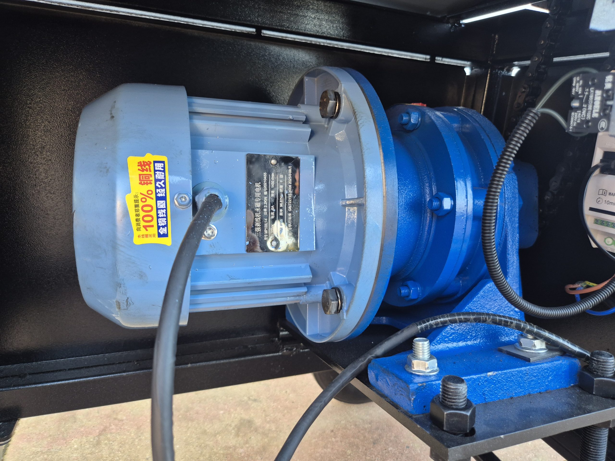 Krachtig vermogen van 2,2 kW motor met daarachter een zware tandwielkast.